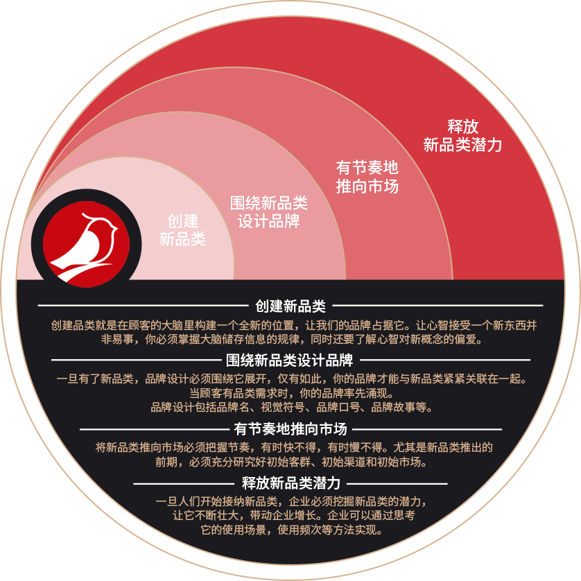 作为市场跟随者,企业要勇于挑战现状,打破规则,重塑顾客的选择路径。胜利鸟主张用新品类来重塑顾客选择。胜利鸟借助科学的方法论,协助超30家中国企业通过设计新品类,成为市场第一,顾客的第一选择。